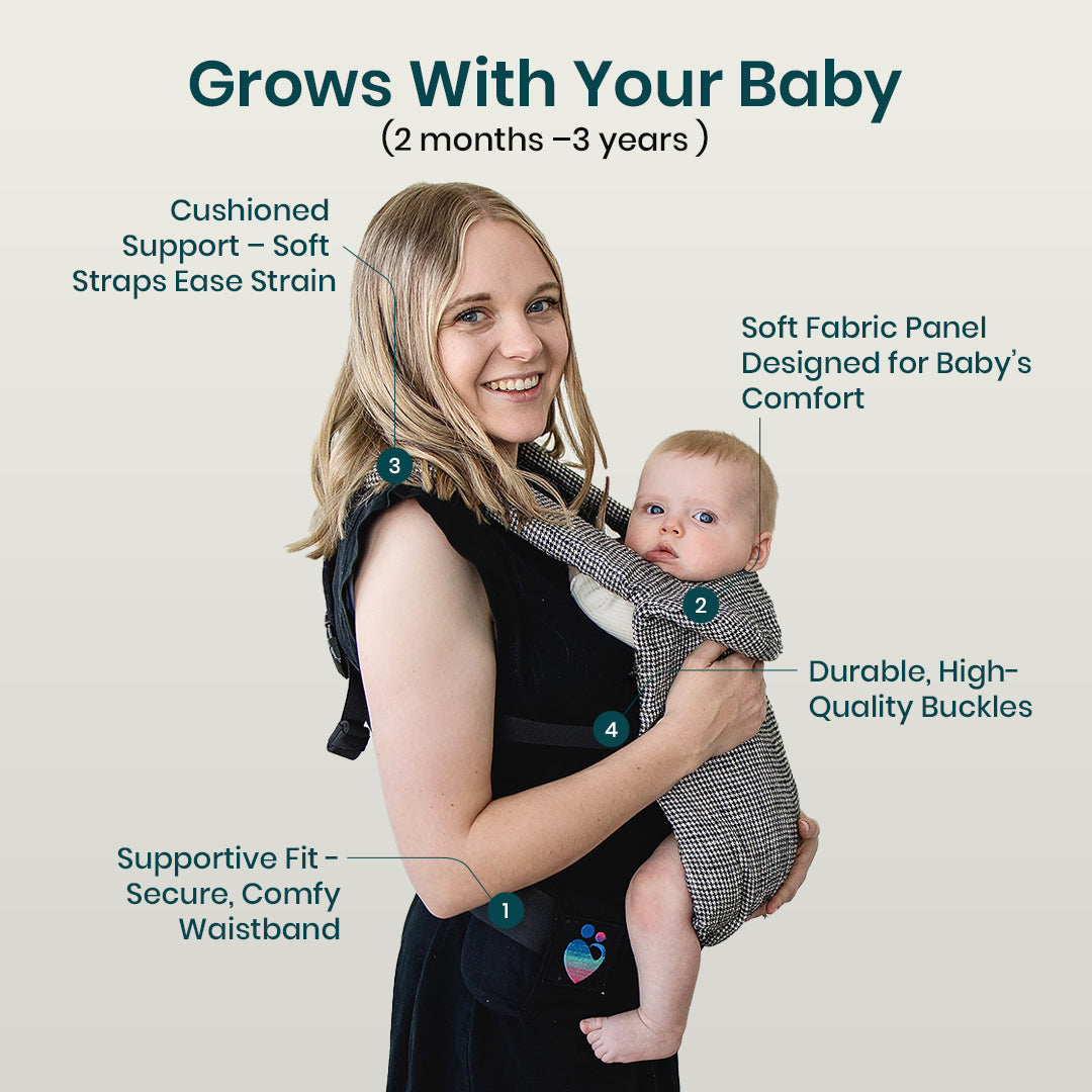 Our carriers are recommended by certified babywearing consultants, pediatric physiotherapists, labor & delivery nurses, and other healthcare professionals who work closely with parents and newborns every day. Their expert feedback has helped shape the fit, structure, and materials we use — so you can feel confident carrying your baby, right from the start.