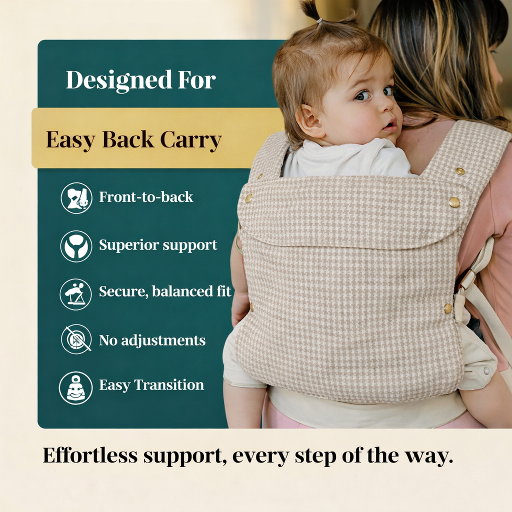 A fabric panel (where baby sits directly) without added fillers allows air to circulate freely between parent and baby. By eliminating bulky padding, heat and moisture can dissipate naturally, helping maintain a balanced, comfortable body temperature across changing conditions.