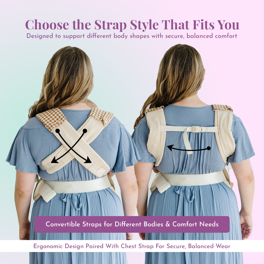 This carrier is so comfy for both me and baby! Being able to choose how to wear the straps makes it the best option for sharing it with my husband. And I love that I can take the covers off and wash them!