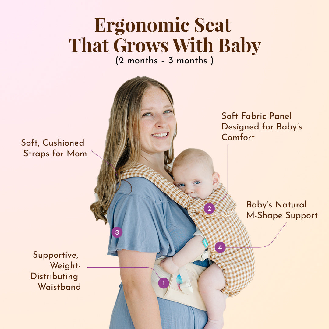 Created with pediatric physical therapists and babywearing experts to ensure superior support for parents and healthy, ergonomic positioning for babies.
