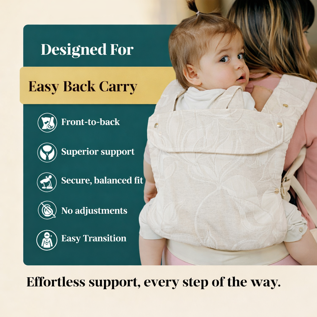 A fabric panel (where baby sits directly) without added fillers allows air to circulate freely between parent and baby. By eliminating bulky padding, heat and moisture can dissipate naturally, helping maintain a balanced, comfortable body temperature across changing conditions.