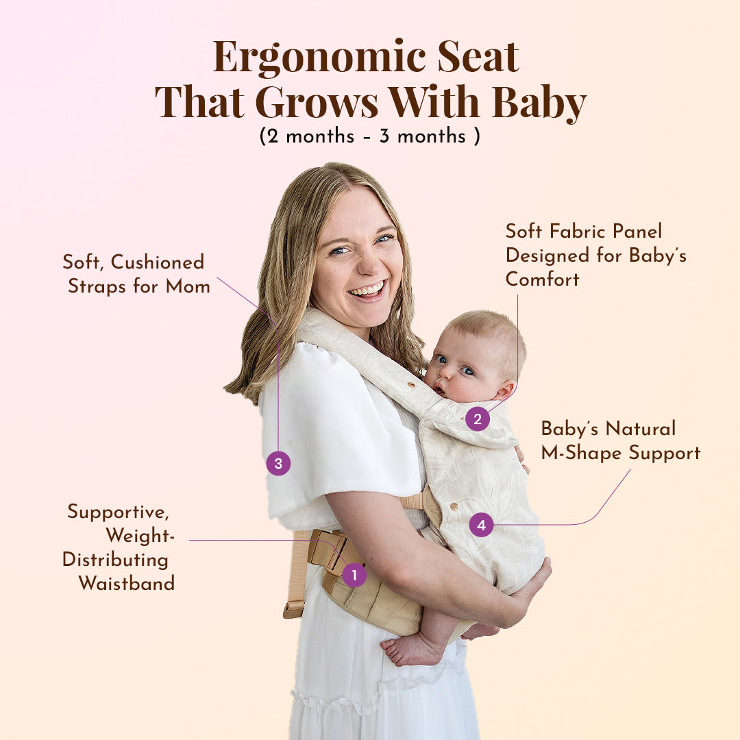 Created with pediatric physical therapists and babywearing experts to ensure superior support for parents and healthy, ergonomic positioning for babies.