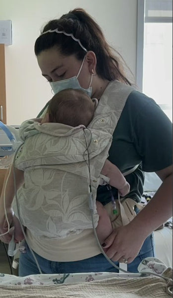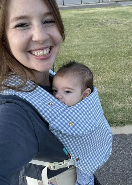 I never thought babywearing would be possible with a baby that had a trach, vent and g-tube, was baby wearing. BUT we gave it a tray, and it was a HUGE success. Baby boy was comfortable, I was comfortable. And I love that we can switch out the covers so if anything gets stained, it’s an easy wash.