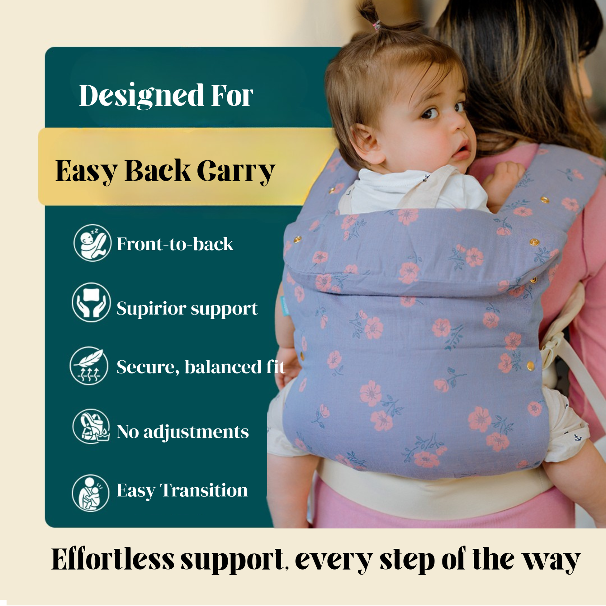 Created with pediatric physical therapists and babywearing experts to ensure superior support for parents and healthy, ergonomic positioning for babies.