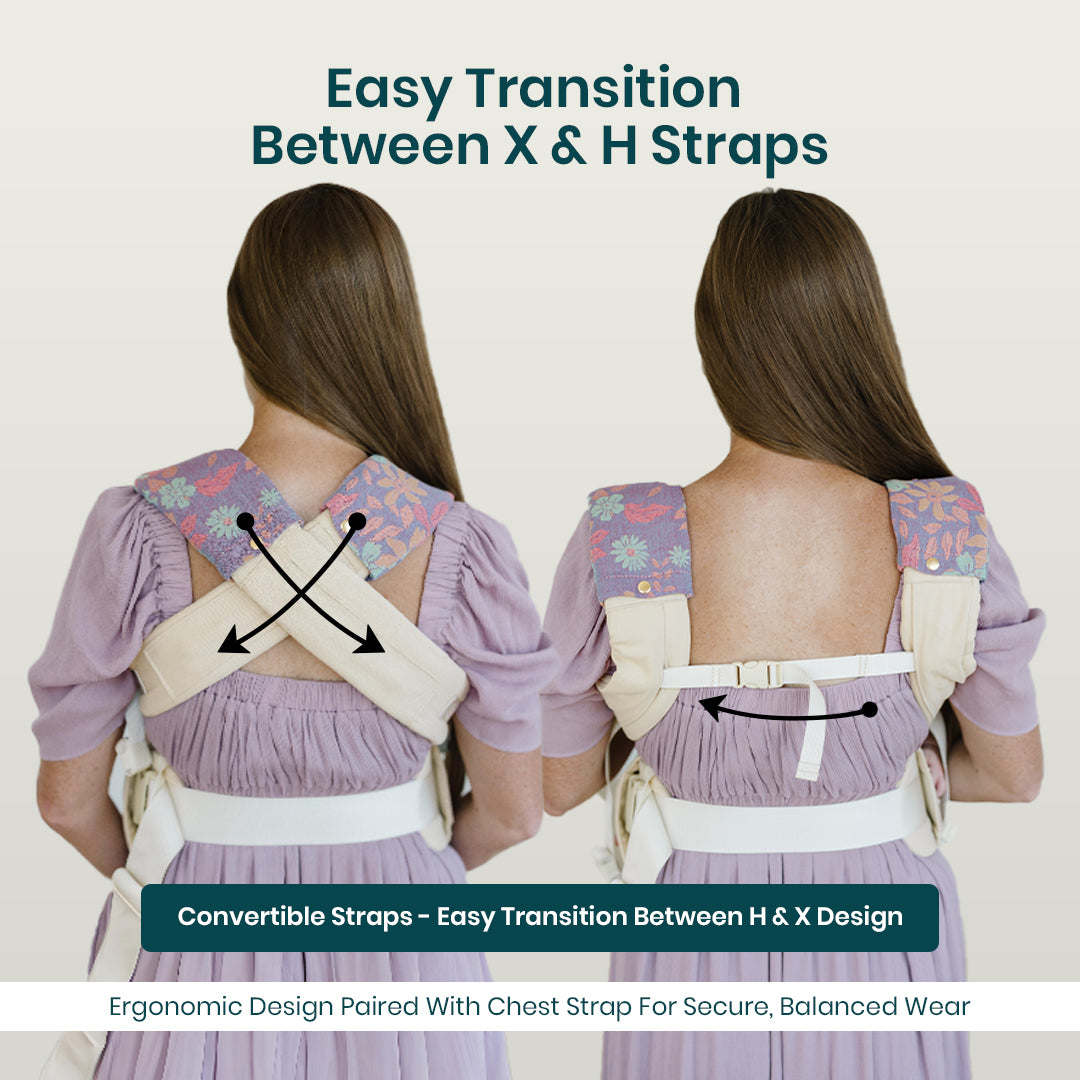 It’s supportive, inclusive (waistband fits 24"–56"), and easy to use shoulder strap with both H and X strap options. It also allows for easy transition between back and front carry positions.