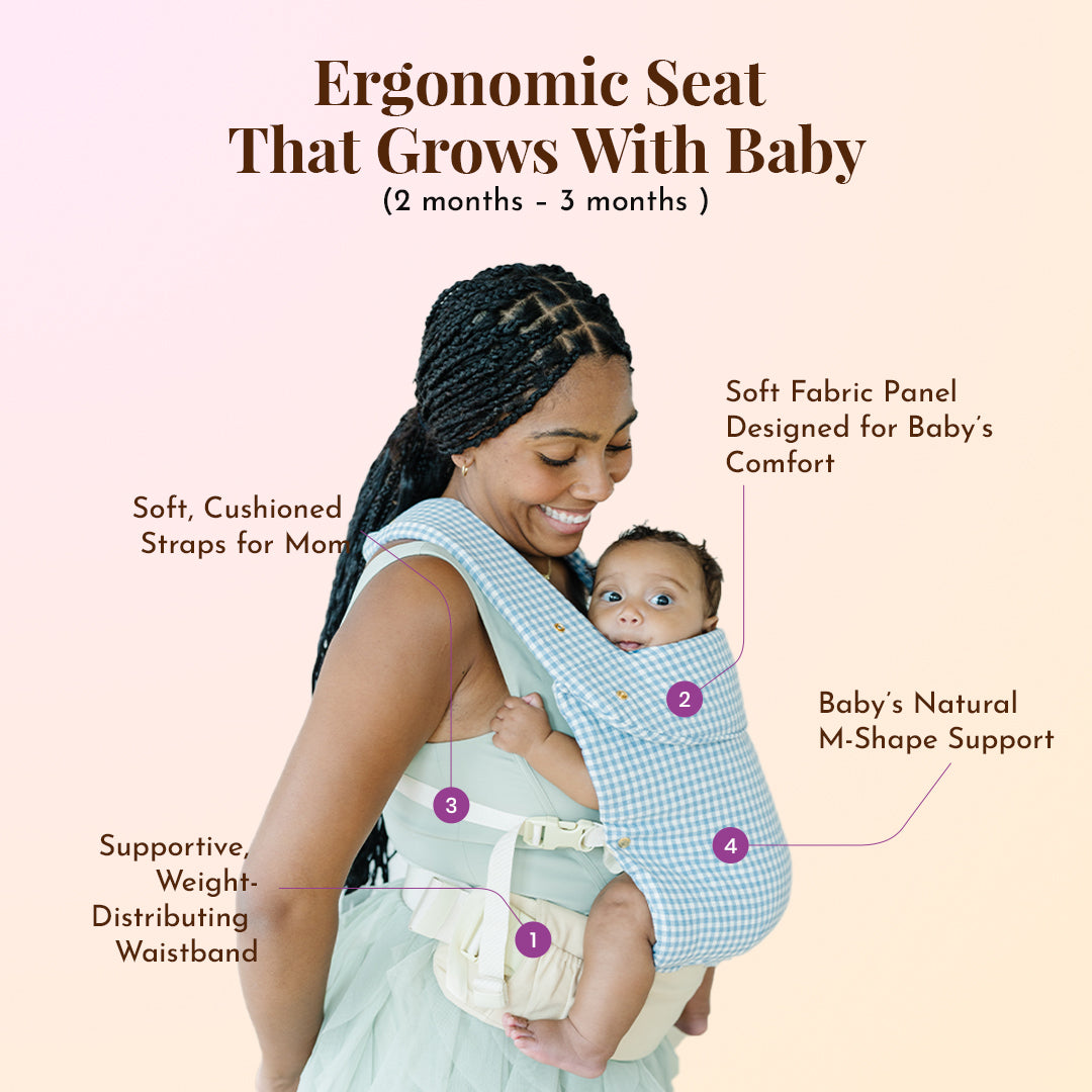 Created with pediatric physical therapists and babywearing experts to ensure superior support for parents and healthy, ergonomic positioning for babies.
