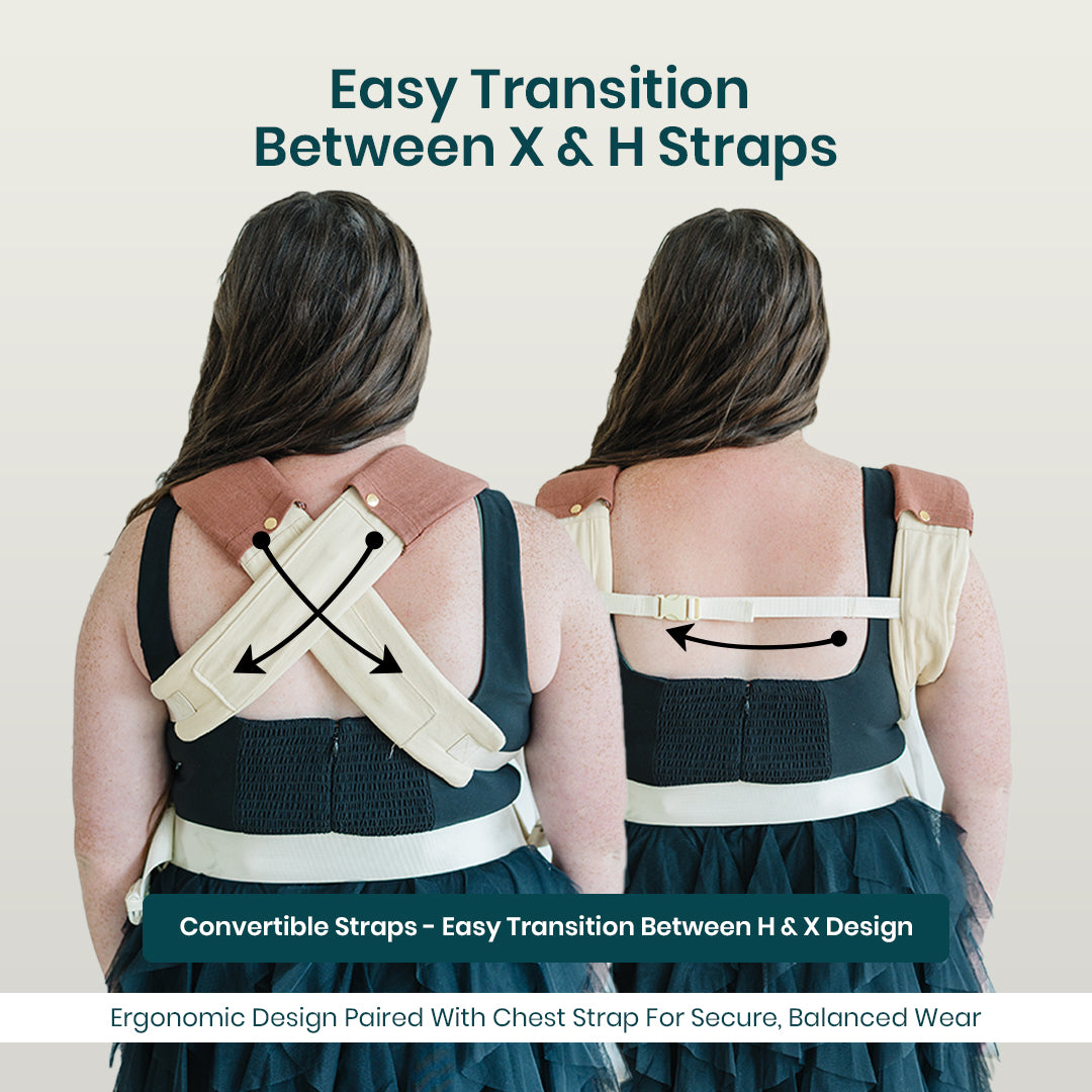 It’s supportive, inclusive (waistband fits 24"–56"), and easy to use shoulder strap with both H and X strap options. It also allows for easy transition between back and front carry positions.