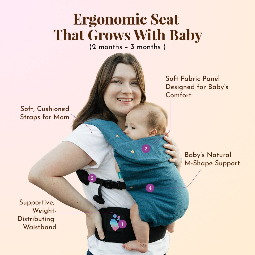 Created with pediatric physical therapists and babywearing experts to ensure superior support for parents and healthy, ergonomic positioning for babies.