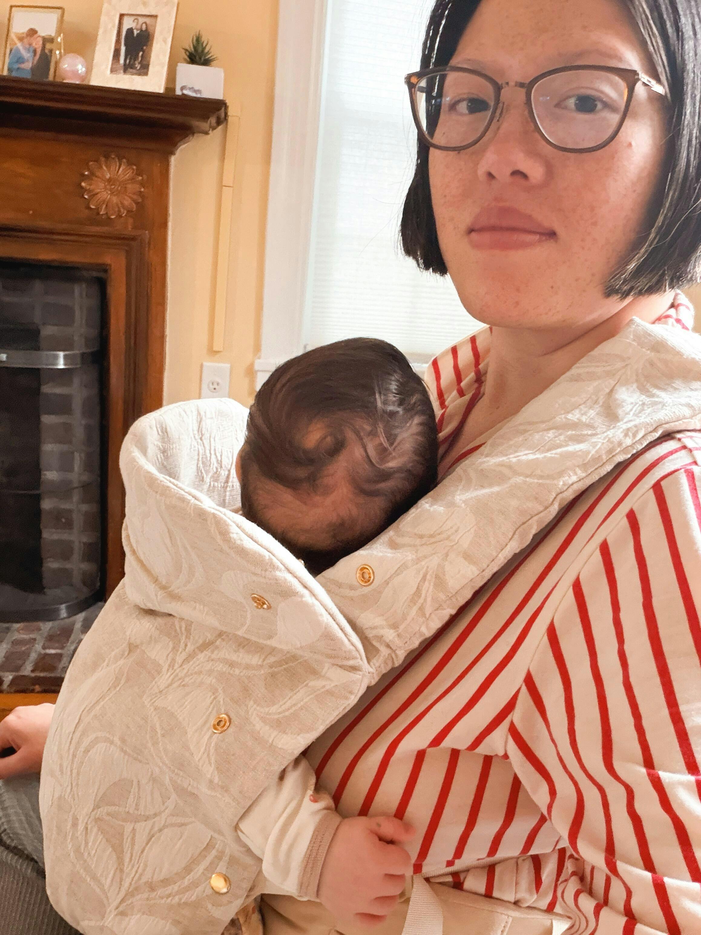 According to the International Hip Dysplasia Institute, forward-facing carry should be limited to 15–20 minutes at a time, as it may place added pressure on a baby’s hips, spine, and pelvis, especially if not perfectly fitted. It’s also harder to achieve an ergonomically safe and secure fit for both baby and caregiver in this position.