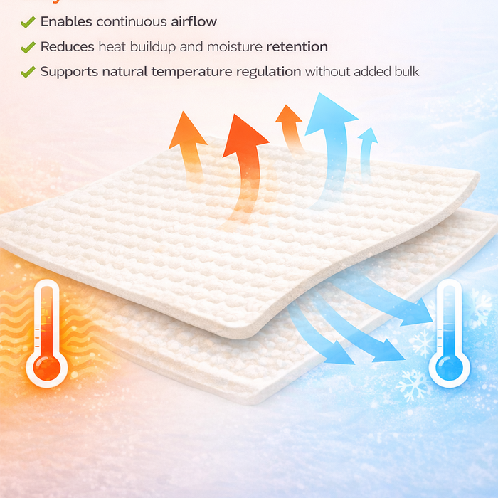 Made from 100% natural fibers that help regulate temperature, staying cool in warm weather and comfortably warm when it’s cold.