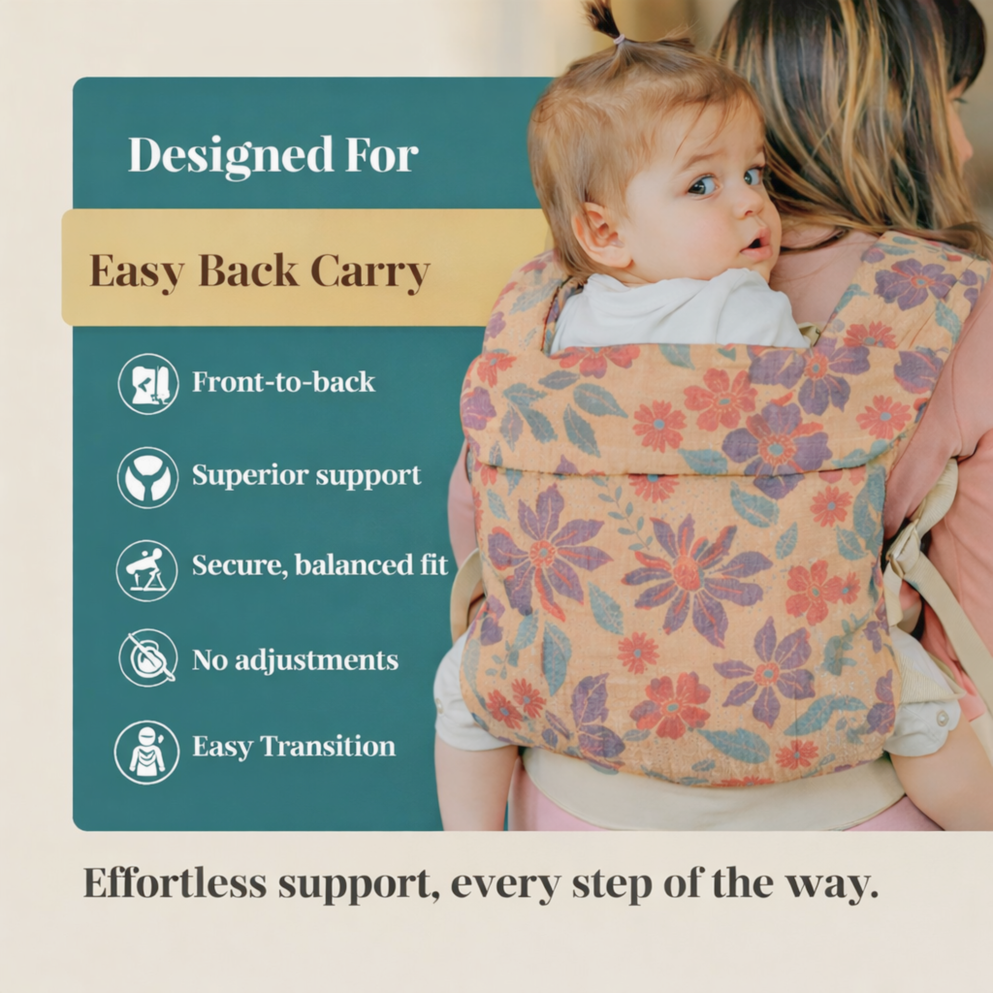 A fabric panel (where baby sits directly) without added fillers allows air to circulate freely between parent and baby. By eliminating bulky padding, heat and moisture can dissipate naturally, helping maintain a balanced, comfortable body temperature across changing conditions.