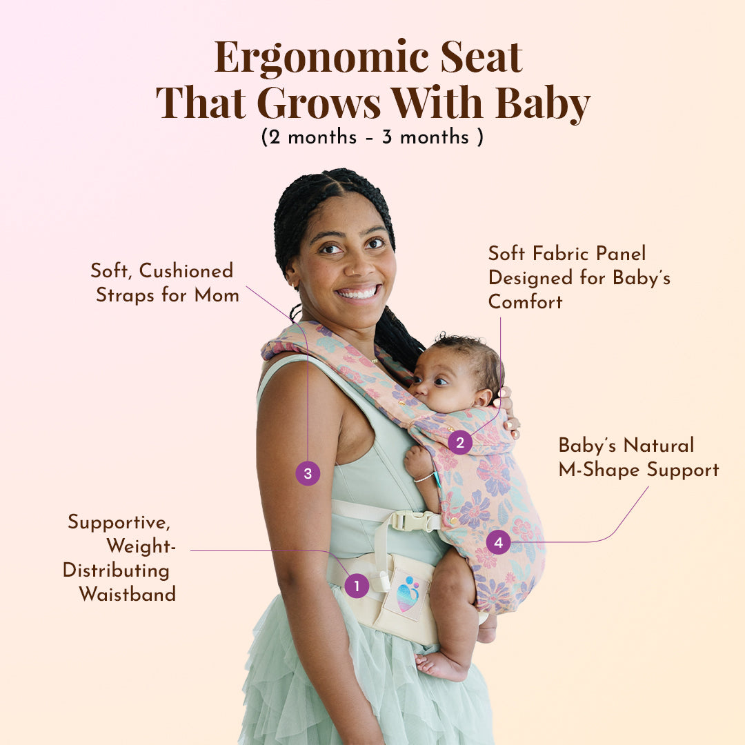 Created with pediatric physical therapists and babywearing experts to ensure superior support for parents and healthy, ergonomic positioning for babies.